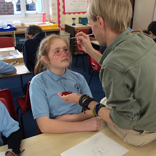 On Wednesday, we had Rainforest Dave come in and he was not only hilariously entertaining but wonderfully informative providing first-hand experiences to the children which is always so great as they could ask direct questions and get real answers as he has actually lived it. We had the opportunity to hold a tarantula and a snake and they were, surprisingly, adorable! In the afternoon, the children made some tribal jewellery and did some observational drawings of real life animals that had died and Dave preserved (he doesn't believe in killing living things so they all died from natural causes). He showed us some tribal weapons and demonstrated how to shoot a dart through a mouth device made from wood and feathers, all sorts! What a day. Please see lots of pictures below.